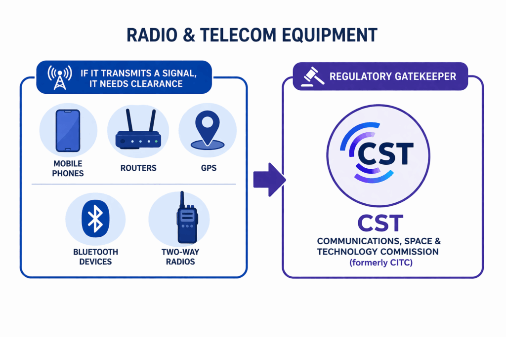 If your product transmits a signal, it requires specialized clearance. Expert Note: Many outdated guides still refer to the agency as CITC. As of recent restructuring, the agency is now the CST.